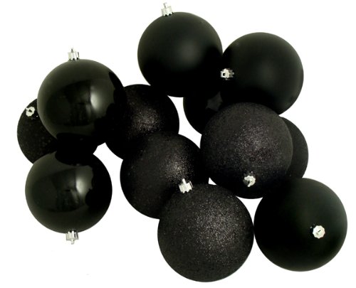 12ct Jet Black Shatterproof 4-Finish Christmas Ball Ornaments 4" (100mm) Review